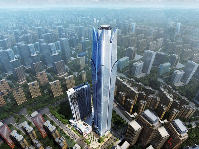 龍光世紀(jì)項(xiàng)目建設(shè)內(nèi)容為建設(shè)一棟82層(381米)的超高層酒店辦公大樓和一棟54層(180米)超高層公寓式辦公大樓。規(guī)劃總用地面積約22669.62平方米,總建筑面積為392,091平方米。兩棟大樓之間有三層裙樓和四層裙樓相連,裙樓主要功能為商業(yè),塔樓作為酒店辦公及公寓式辦公使用。用地功能為城鎮(zhèn)住宅、商務(wù)金融。在北側(cè)綠化廣場局部設(shè)置中央水景,裙樓局部樓頂設(shè)置綠化空間及游泳池。設(shè)置四層地下停車等。預(yù)計2017年初步建成運(yùn)營。