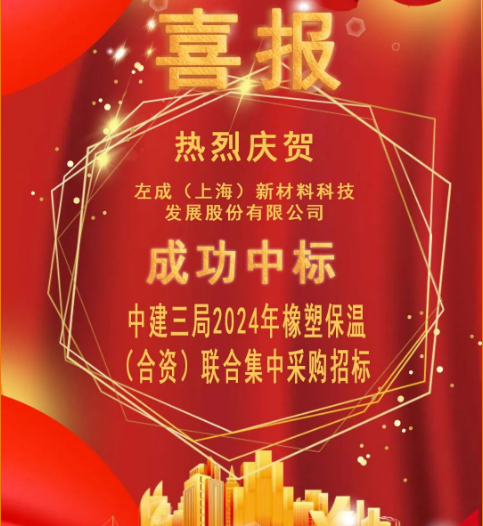 左成(上海)新材料科技發(fā)展股份有限公司成功中標(biāo)中建三局2024年橡塑保溫(合資)聯(lián)合集中采購招標(biāo)