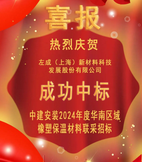 左成(上海)新材料科技發(fā)展股份有限公司成功中標(biāo)中建安裝2024年度華南區(qū)域橡塑保溫材料聯(lián)采招標(biāo)
